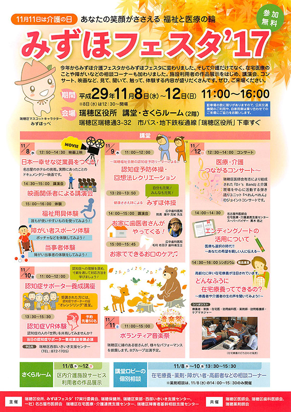 イベントについて、詳しくは瑞穂区役所福祉課(TEL : 052-852-9366)または瑞穂区いきいき支援センターまでお問い合わせください。